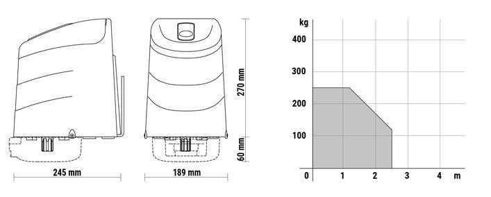 kit je vhodný pre brány s maximálnou dĺžkou jedného krídla 2,5 ma hmotnosti 250 kg